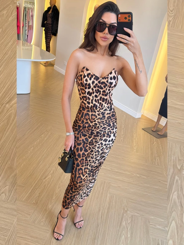 Vestido Midi Animal Print Corset