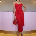 Um clássico glam para iluminar , o vestido em malha lurex vermelho para jantares especiais e noites que pedem brilho elegante. Confeccionado em malha encorpada com elasticidade confortável, o modelo abraça o corpo com sofisticação, valorizando a silhueta com o decote suave em V, alças finas e saia midi com fenda lateral que alonga e traz movimento. O detalhe de faixa lateral (draped panel) aplicado como segunda camada, adiciona fluidez e um toque de alta elegância ao look. Para vestir com segurança e acabamento impecável, o modelo conta com zíper de metal nas costas